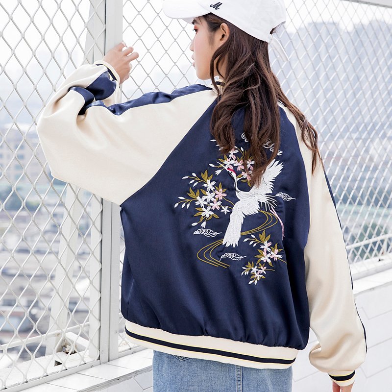 "EMBROIDERED FLOWERS CRANE" JACKET SHORT COAT K100305