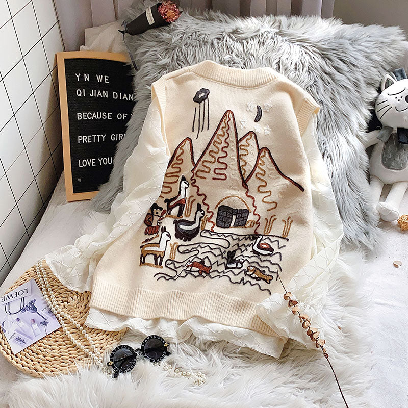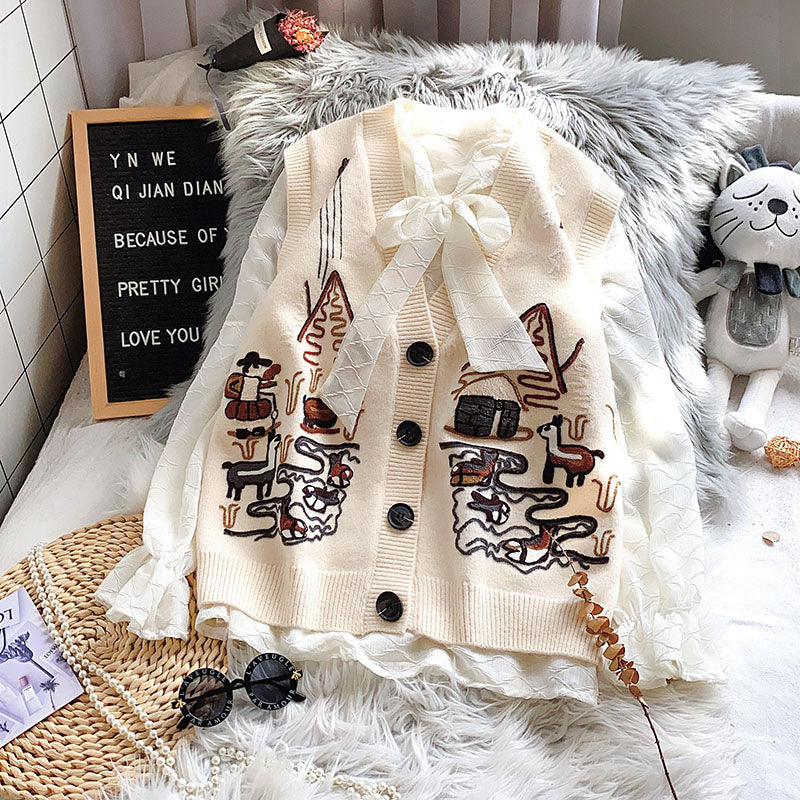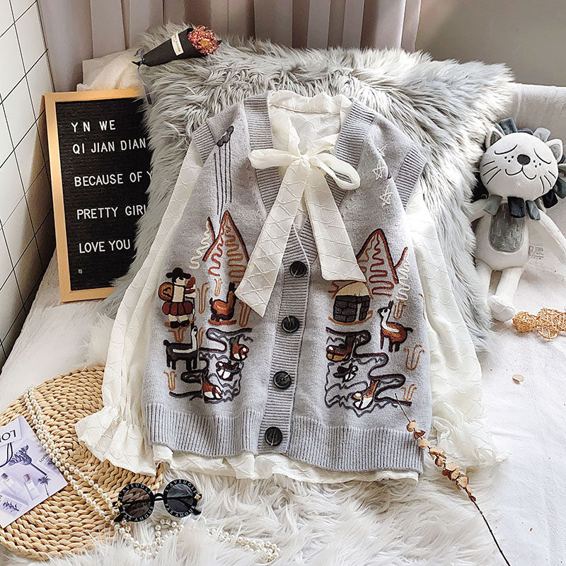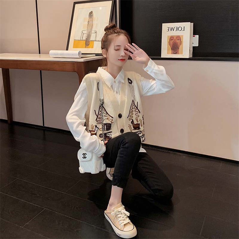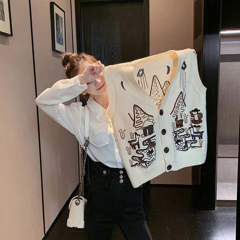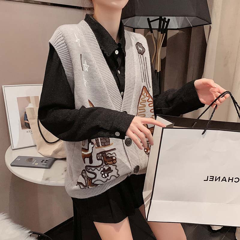 "EMBROIDERED SWEATER" CARDIGAN VEST N091102