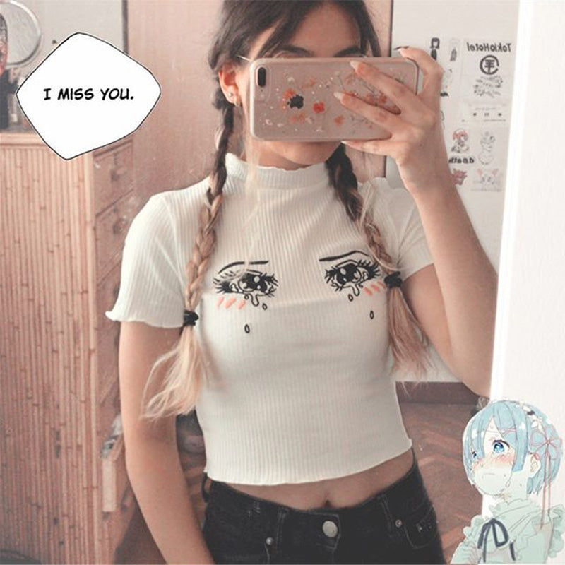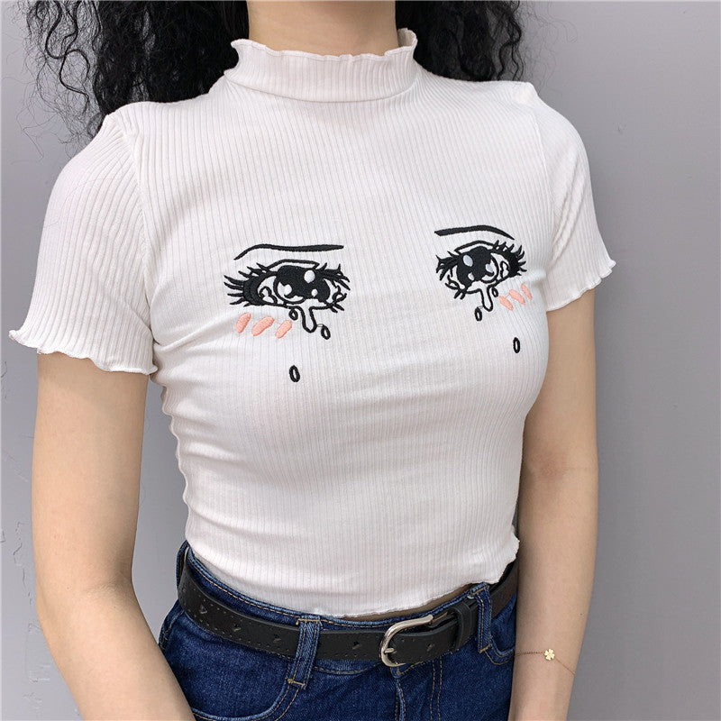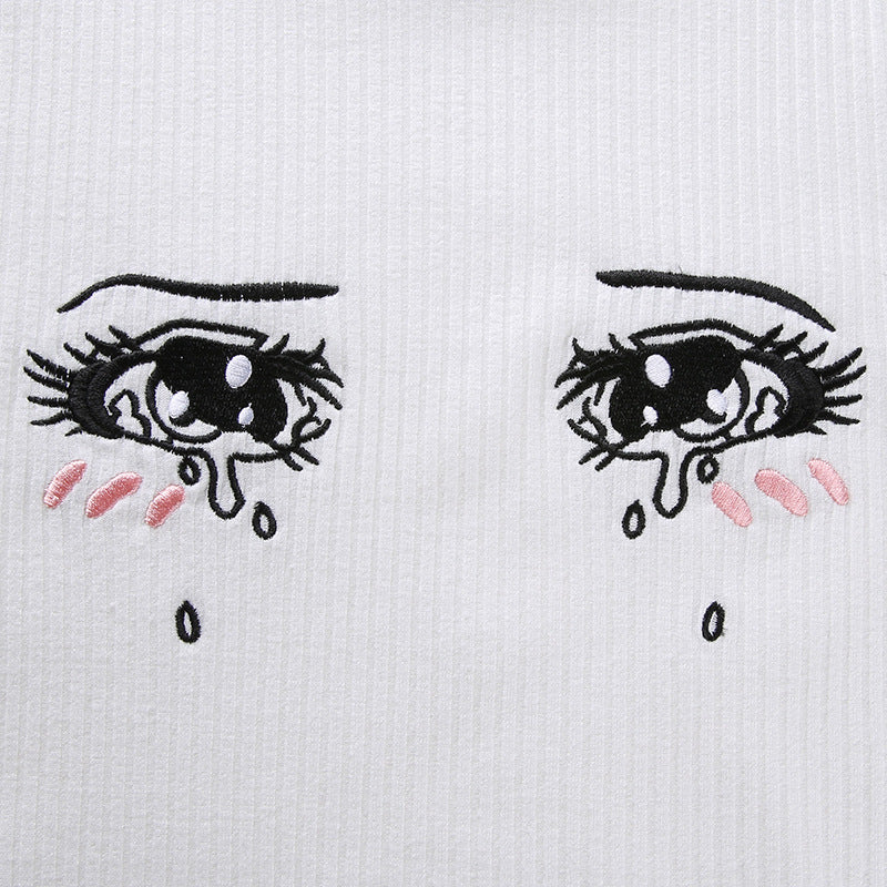 "EMBROIDERED TEARS COMIC EYES" CROP TOP K112015