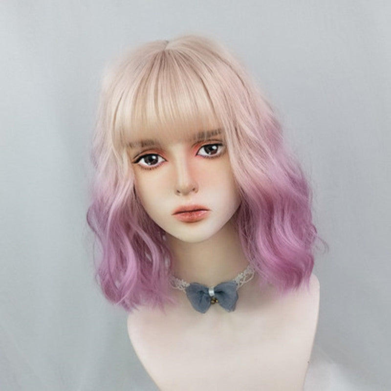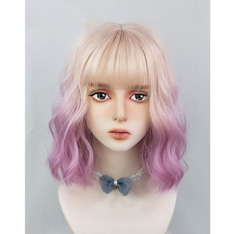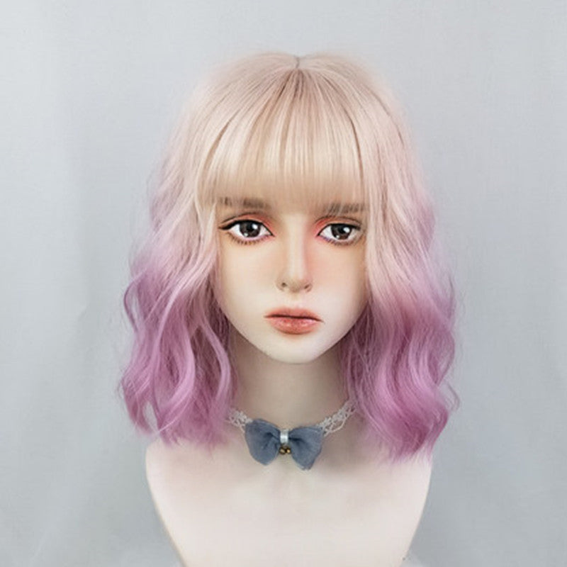 Girly Color Gradient Pink Purple Short Curly Hair UB3501