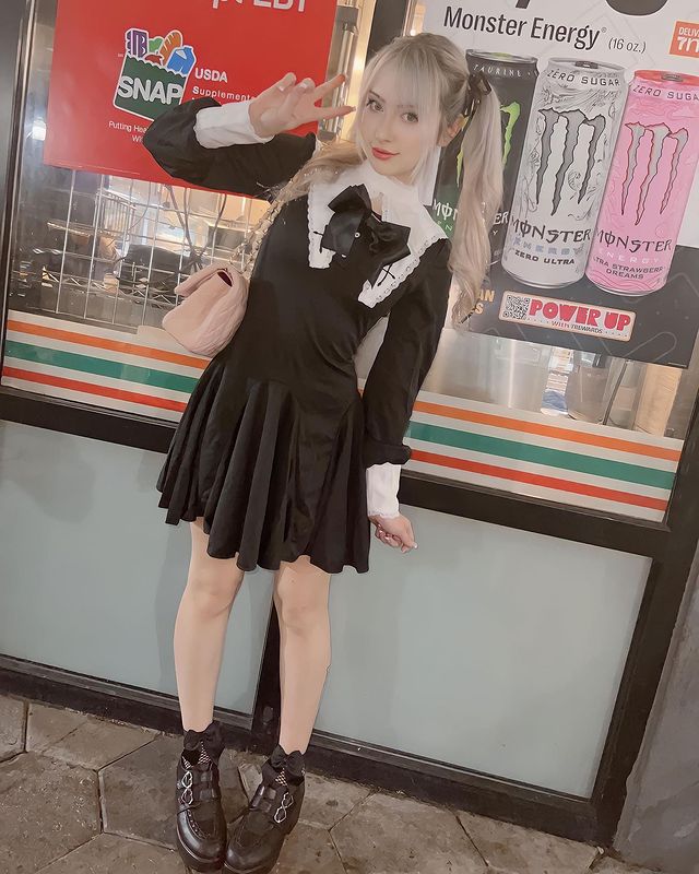 GOTHIC BLACK WHITE LACE STITCHING LACE DRESS UB2730