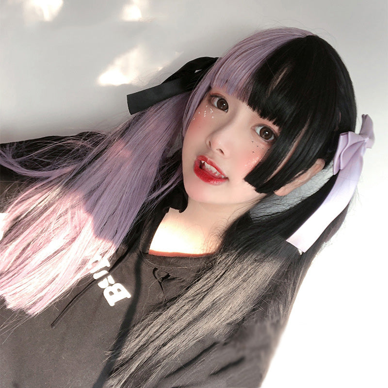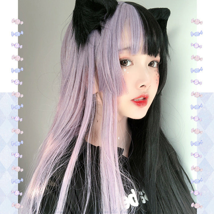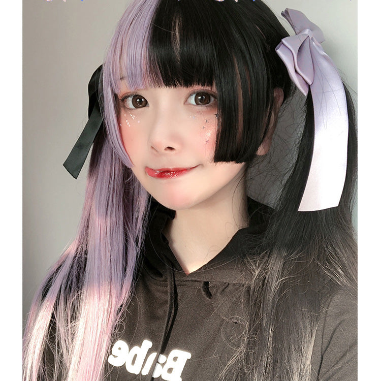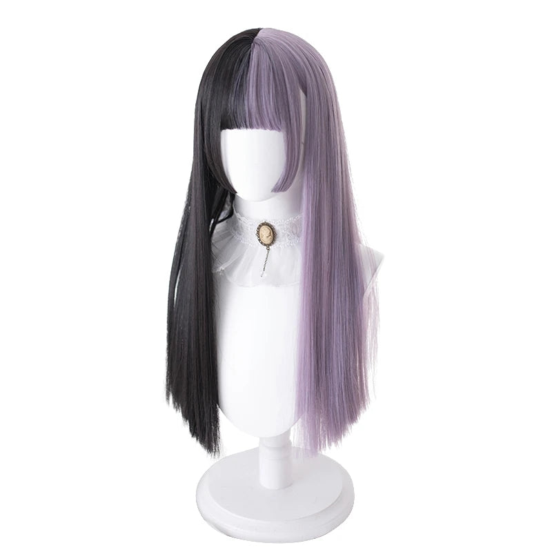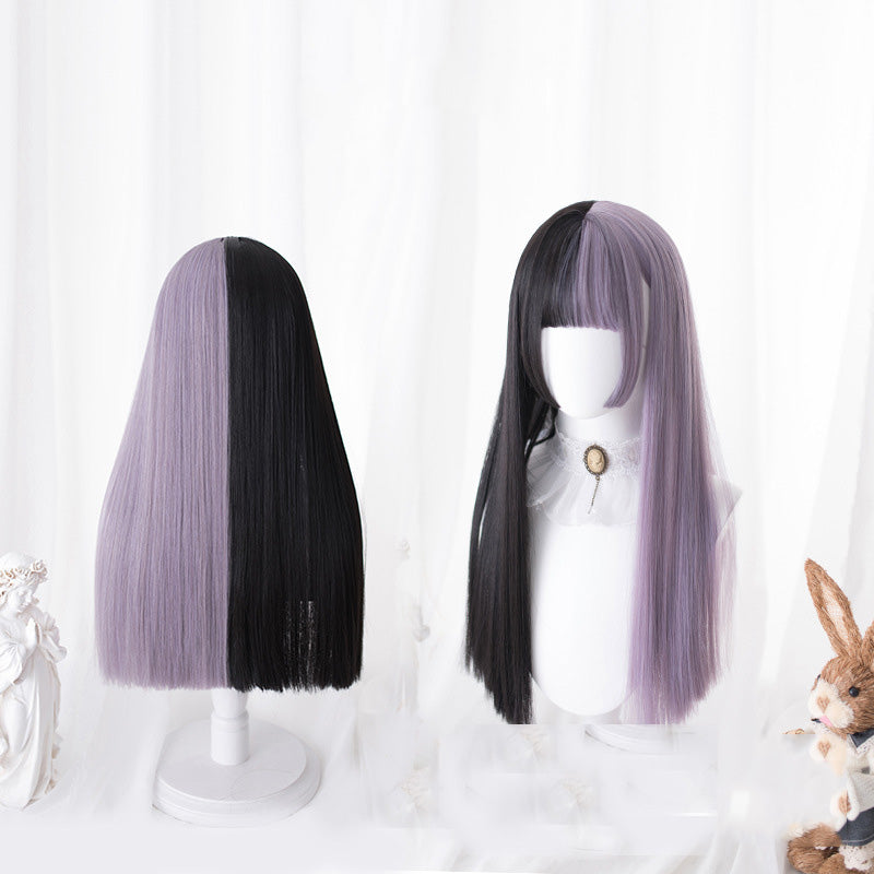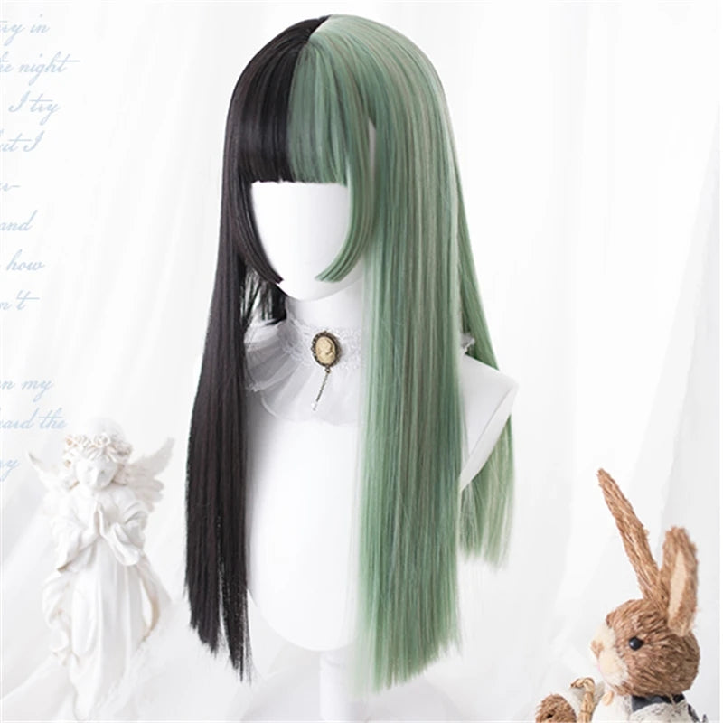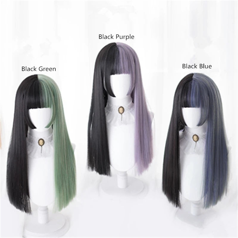 Half Black Half Purple/Blue/Green Straight WIG D041513