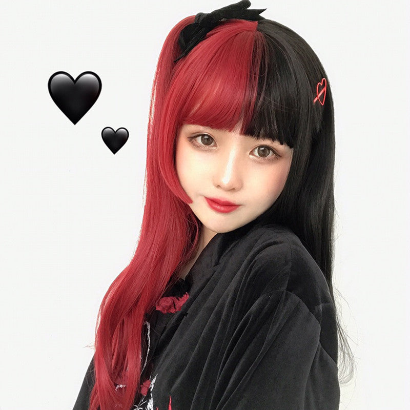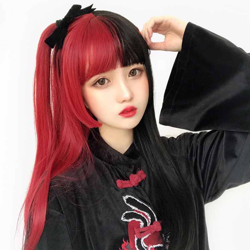 "HALF RED HALF BLACK LOLITA LONG STRAIGHT" WIG D041801