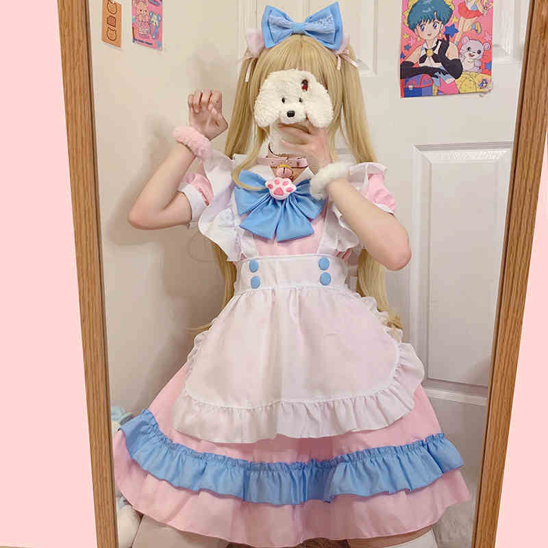 "LOLITA CAT PAW BOW PINK BLUE MAID" OUTFIT DRESS N022406
