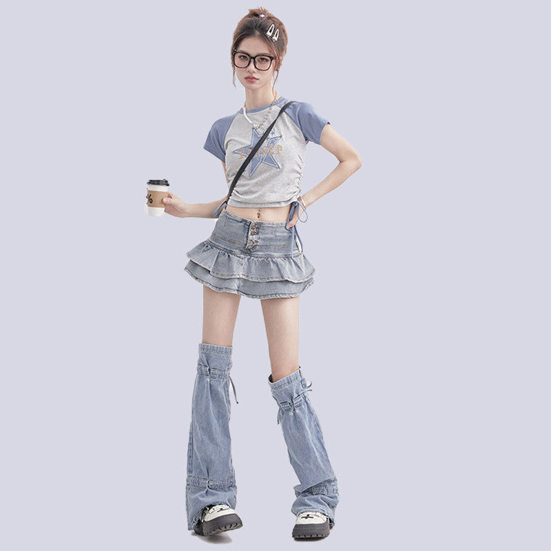 HIGH WAIST RUFFLED DENIM SKIRT UB98104