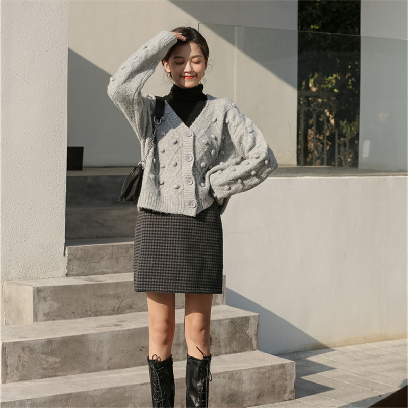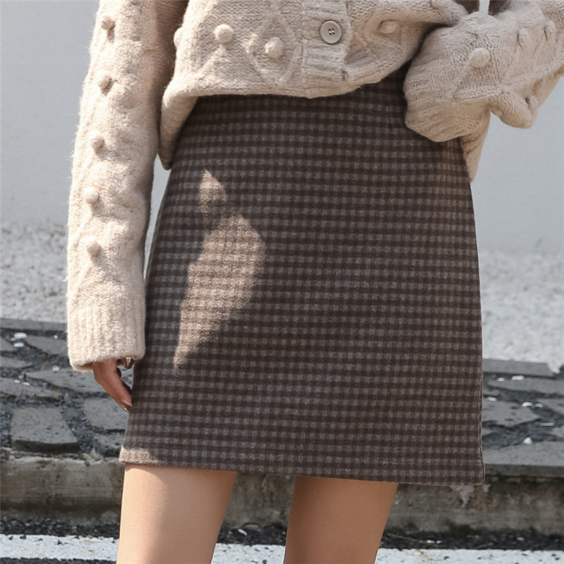 "HIGH WAISTED WOOLEN PLAID" SKIRT N111810