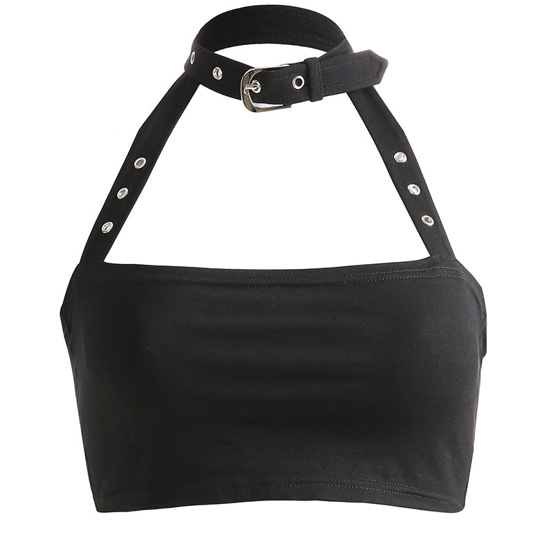 [@itscandycloud ] “METAL BUCKLE HALTER VEST” CROP TOPS W031104