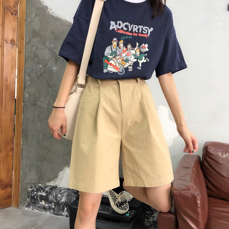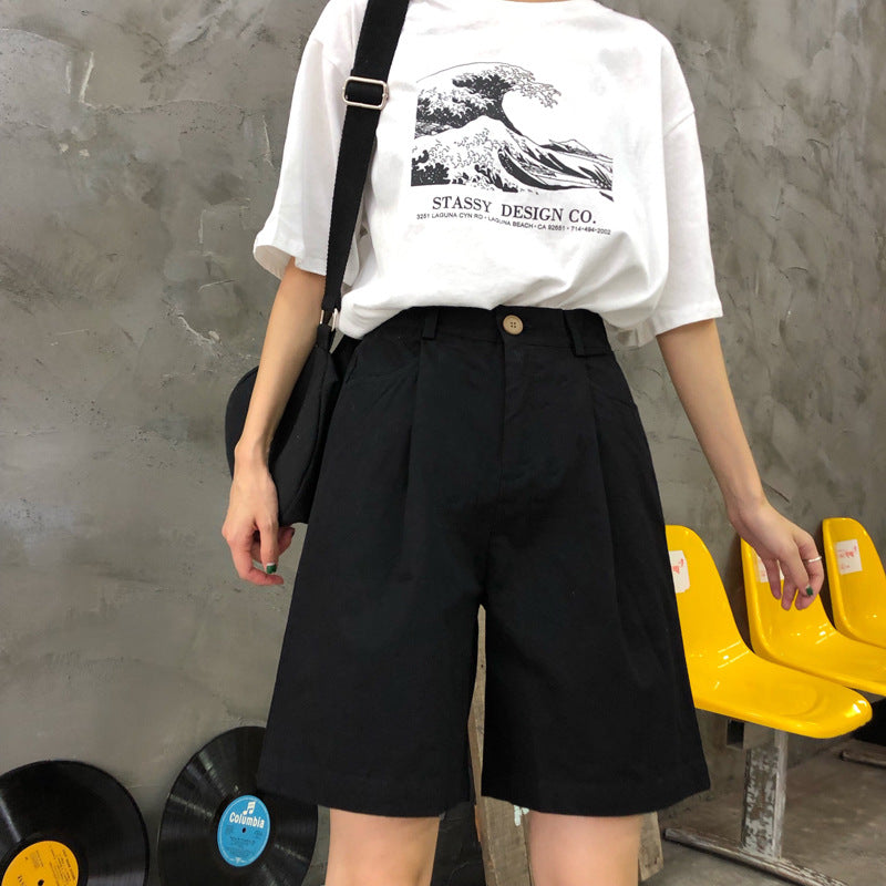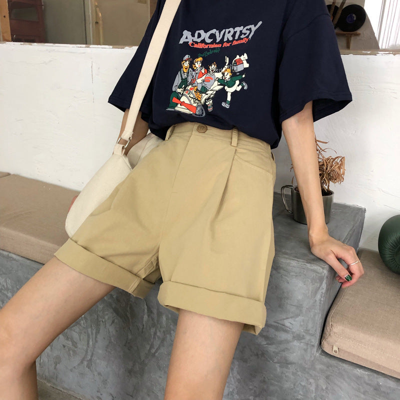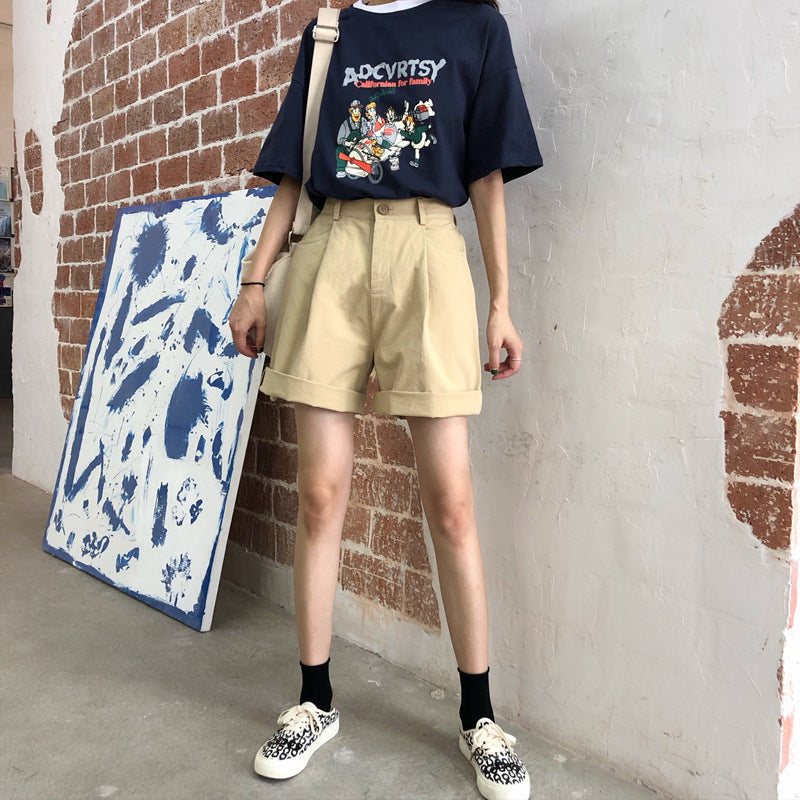 "KHAKI / BLACK LOOSE HIGH WAIST" SHORTS K090706