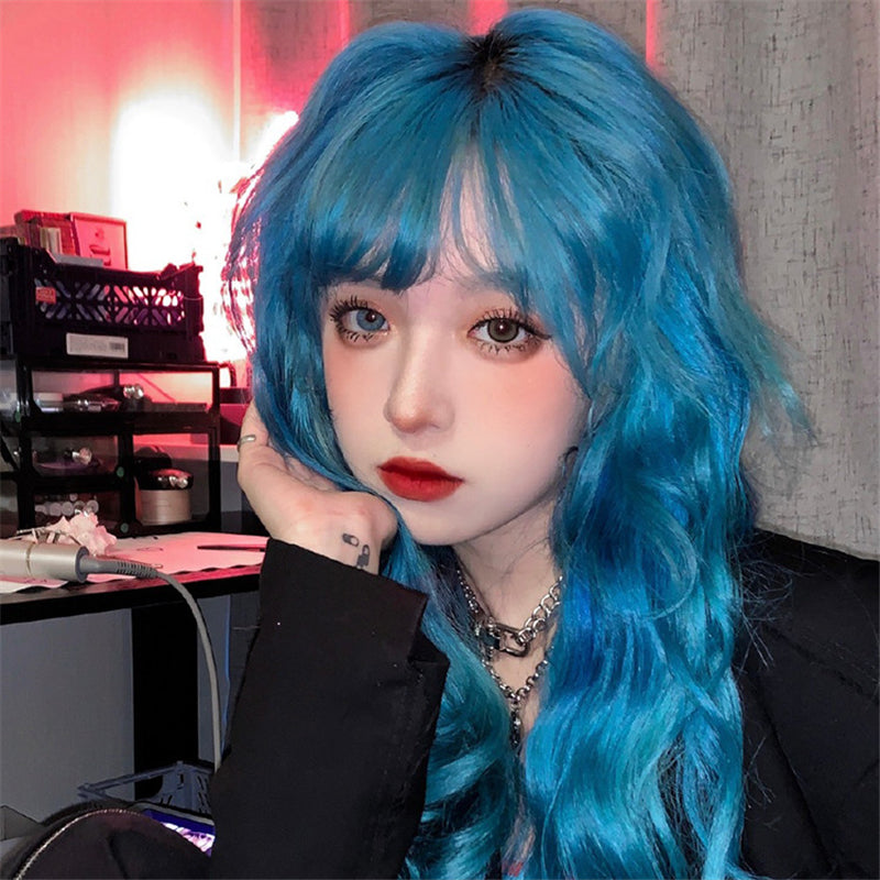 "LOLITA BLUE BANGS LONG" CURLY WIG N042801
