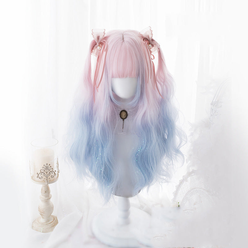 "Lolita Pink Blue Gradient Long Curly" Wig N110209