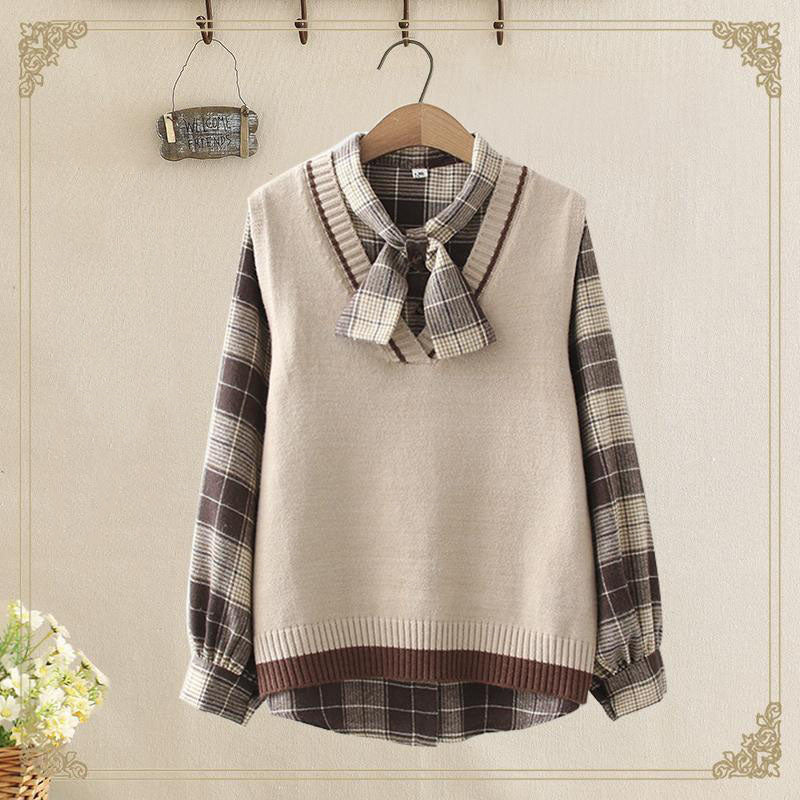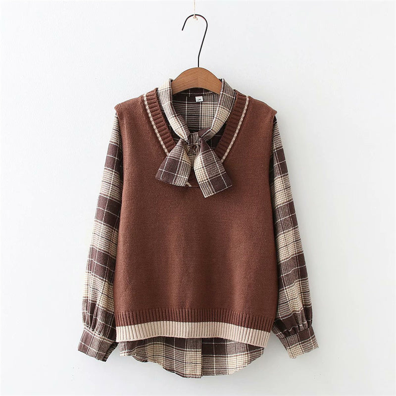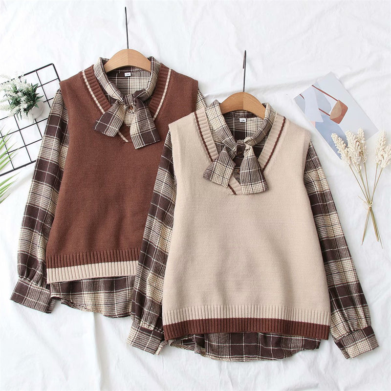 Long Sleeve Shirt + V Neck Vest Two Piece Set UB6187