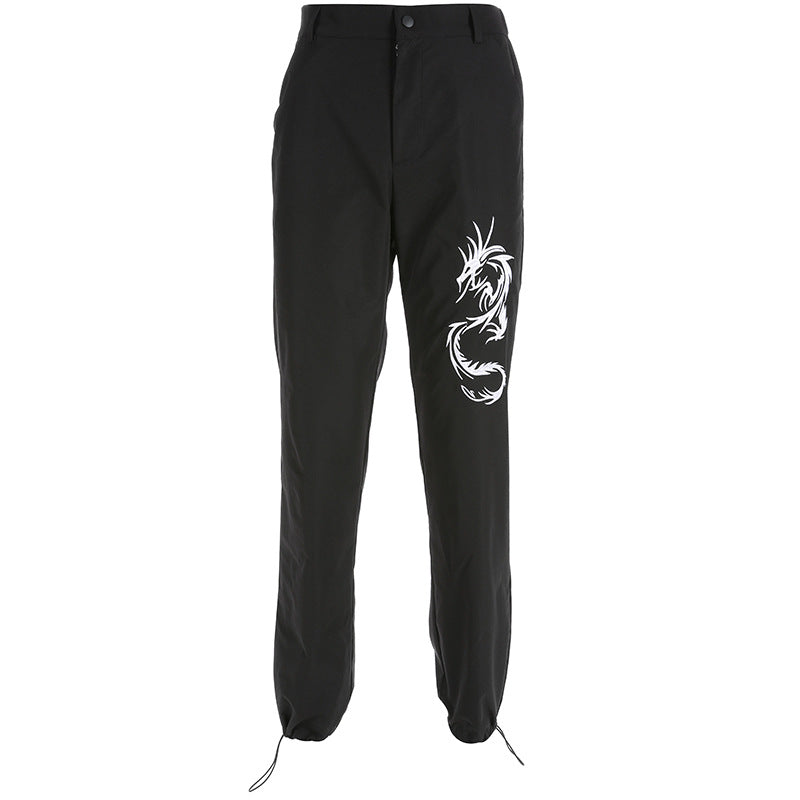 [@merymilkgore] "BLACK EMBROIDERED DRAGON" CASUAL PANTS K081002REVIEW