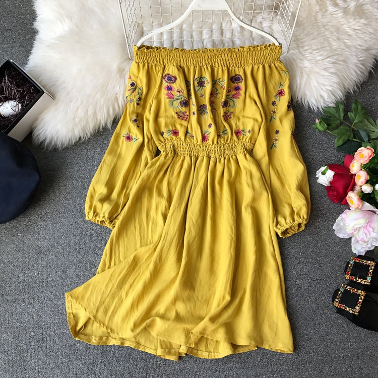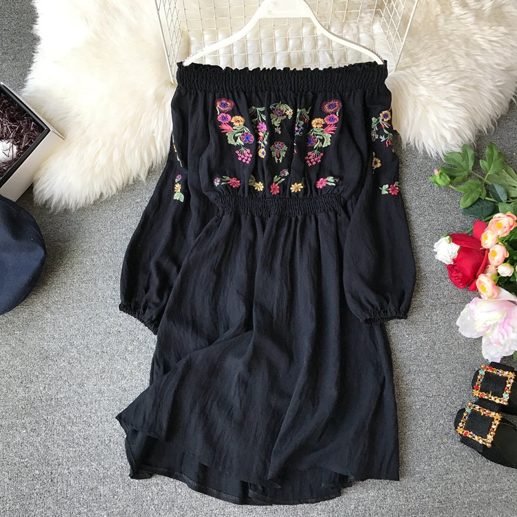 "OFF SHOULDER EMBROIDERED FLORAL" DRESS Y031303