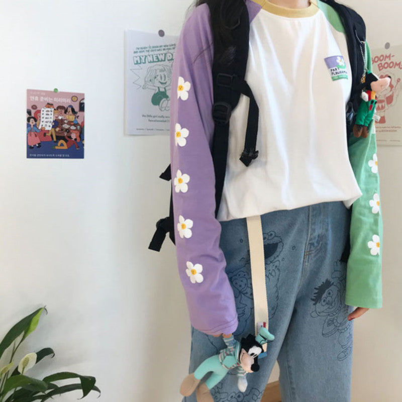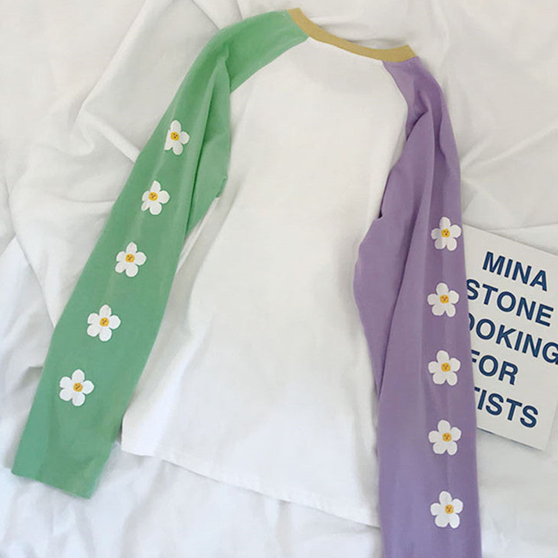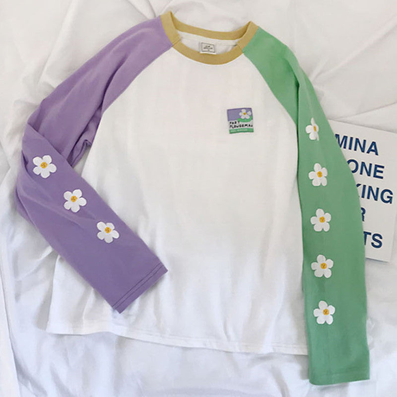 "PASTEL PURPLE GREEN FLOWER" LONG SLEEVE SHIRT K081801
