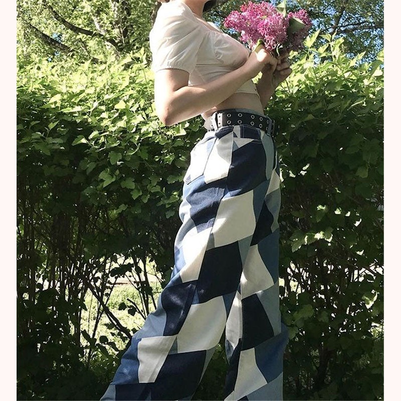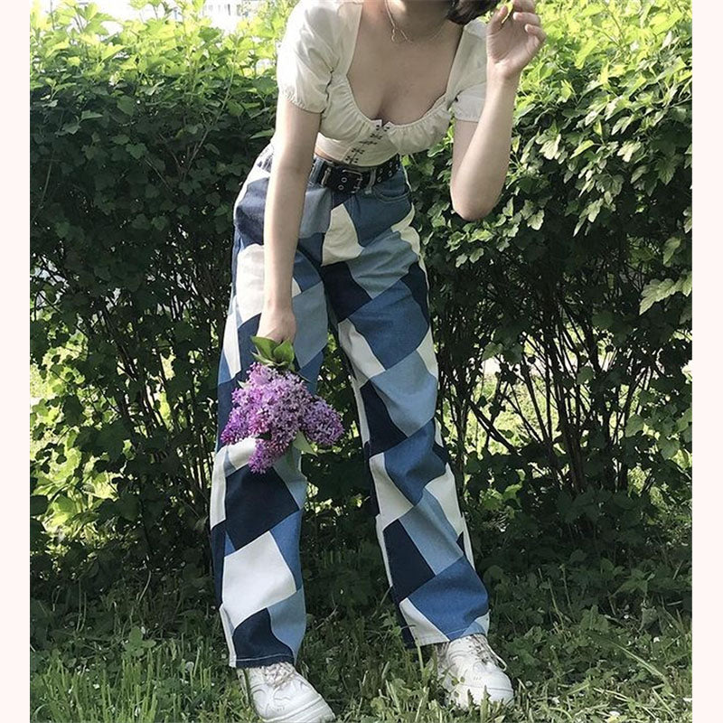 "BLUE WHITE CONTRAST DIAMOND CHECK" JEANS N040702