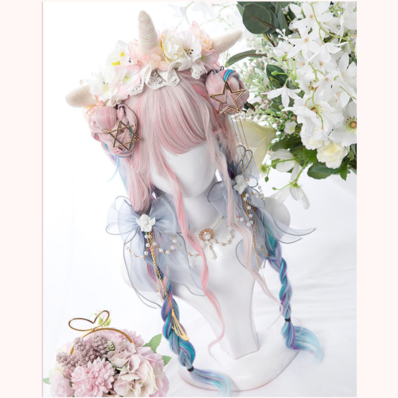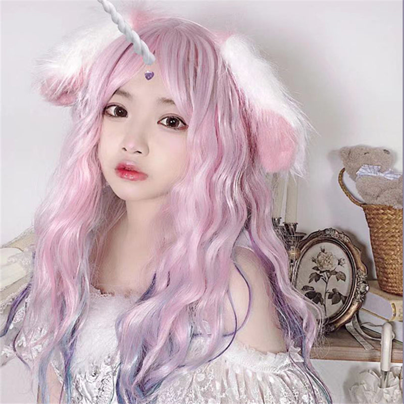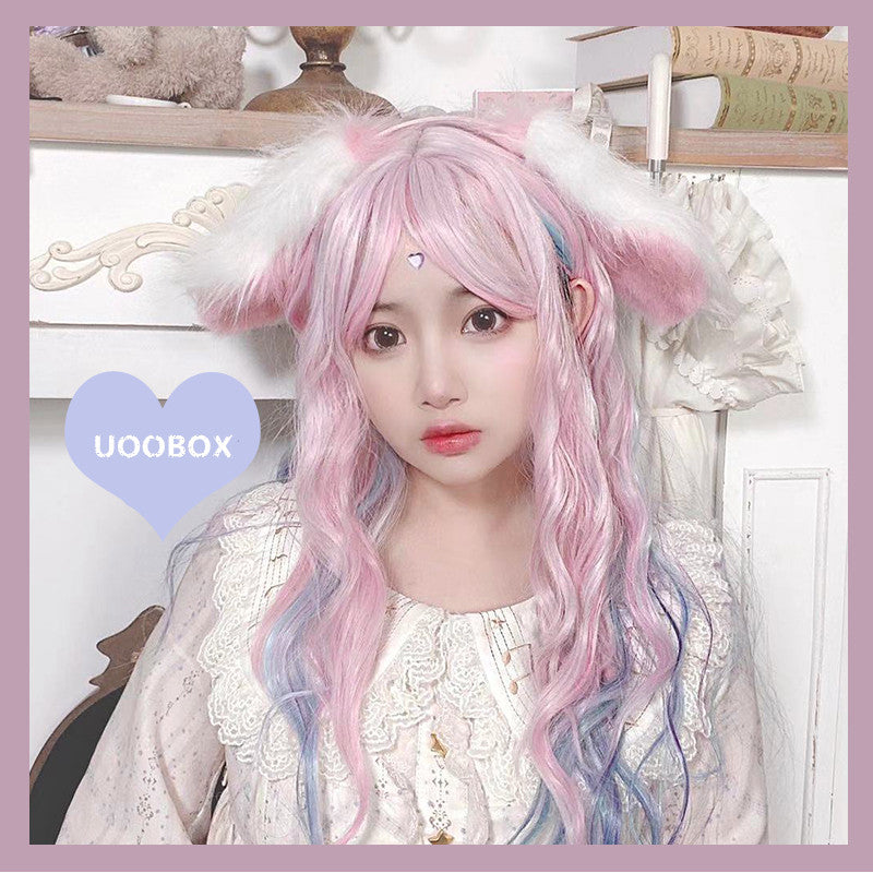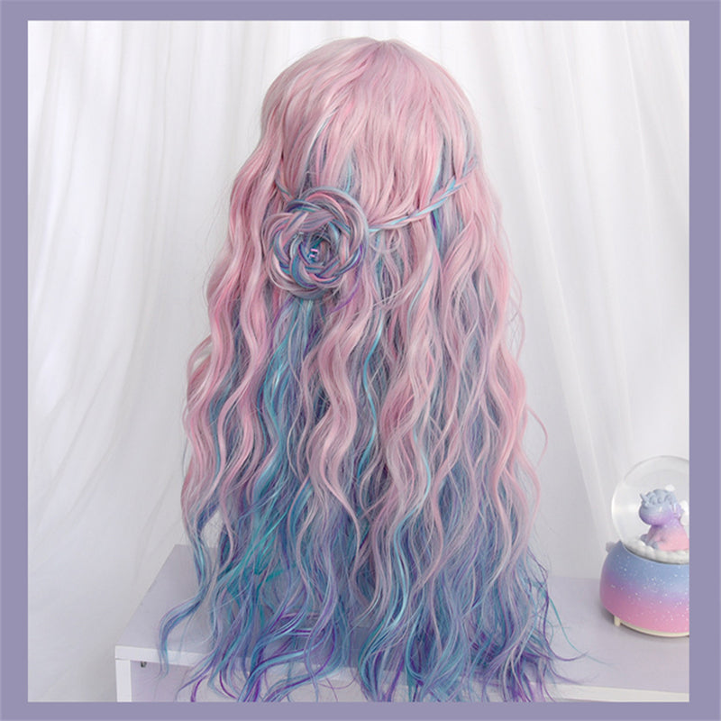 "PINK BLUE PURPLE MIXED GRADIENT LONG CURLY" WIG D051514