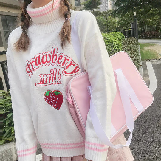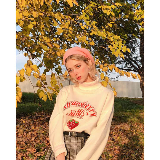 Pink Strawberry Turtleneck Loose Sweater UB96039