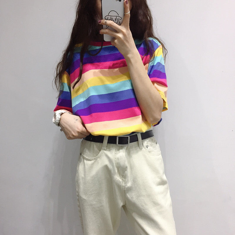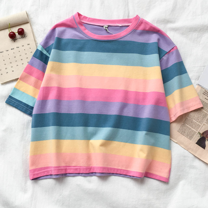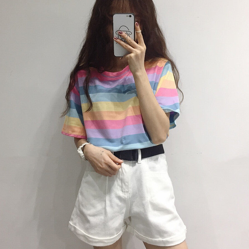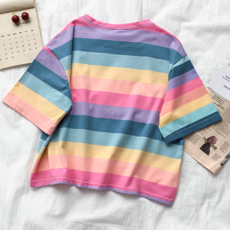 [rainb0w.sweety] "RAINBOW / PASTEL STRIPED SHORT SLEEVE" TEE K072207REVIEW