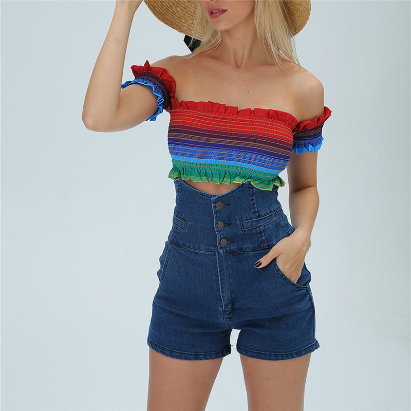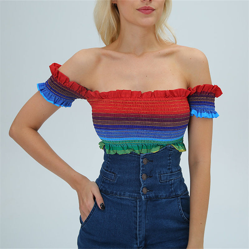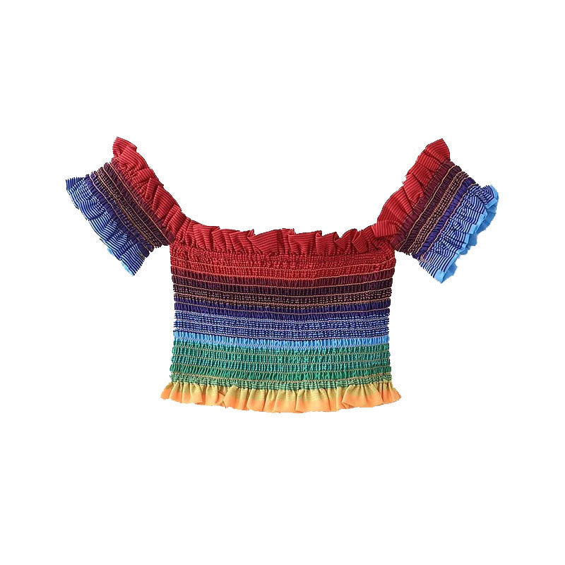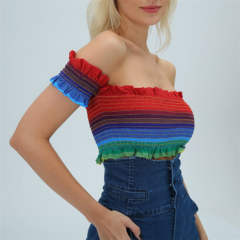 "RAINBOW STRIPED NECKLINE" CROP TOP N081704