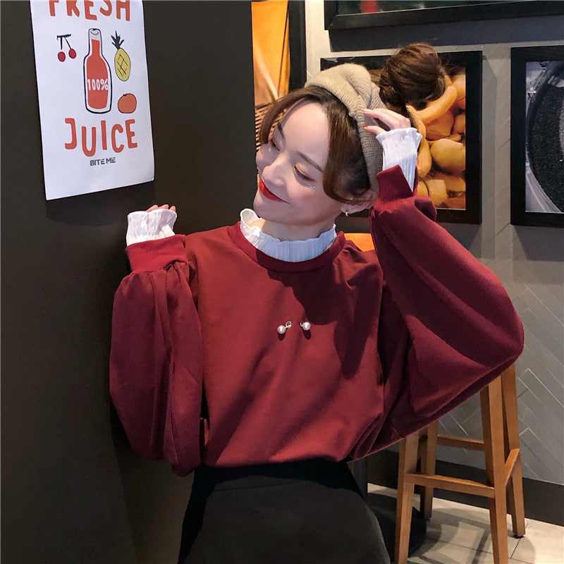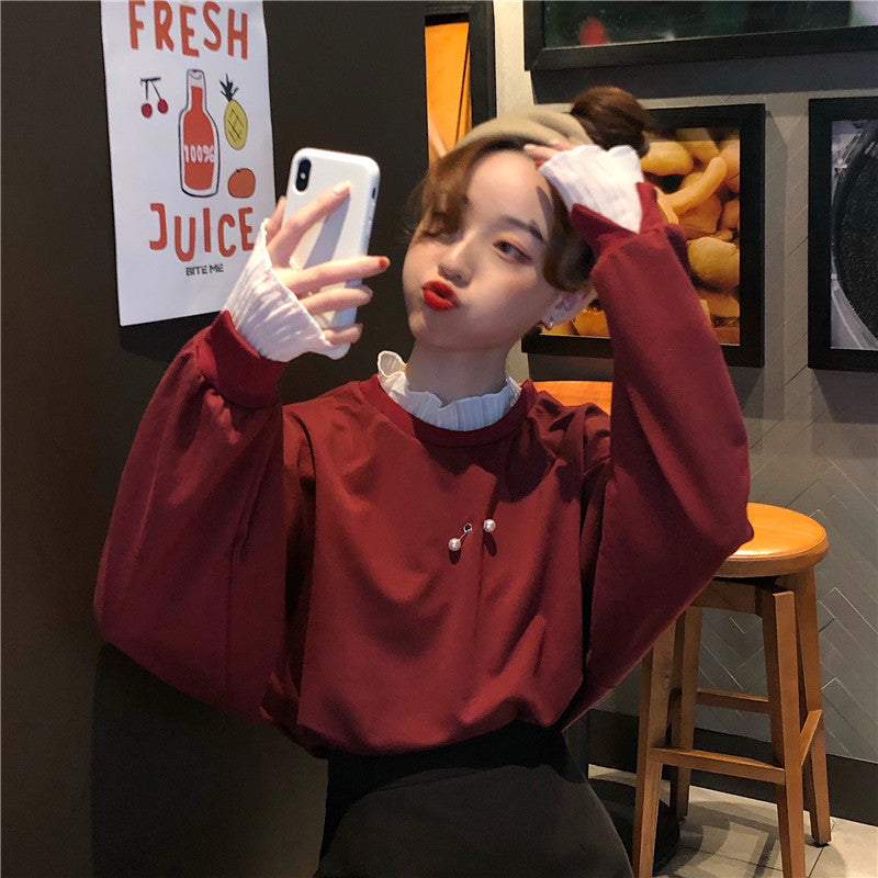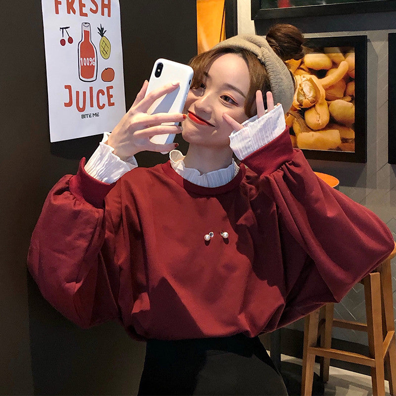 RED/BLACK BEADED LONG SLEEVE PULLOVER UB3363