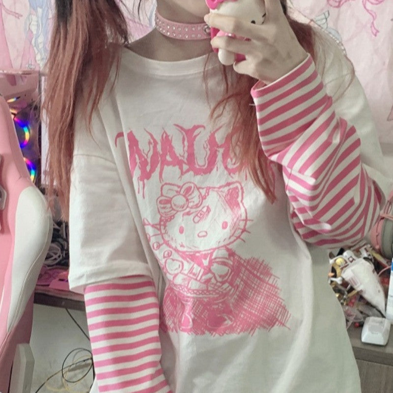 Retro Cartoon Print Fake Two Long Sleeves UB3452