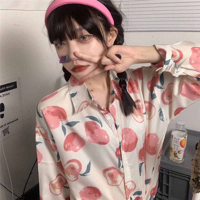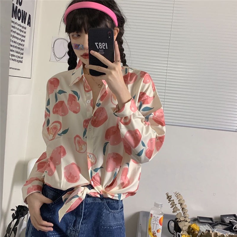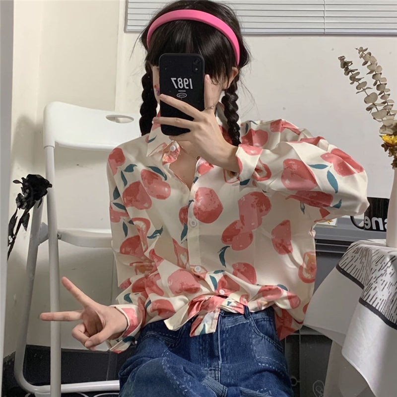 SWEET PEACH PRINT LONG-SLEEVED T-SHIRT UB2701