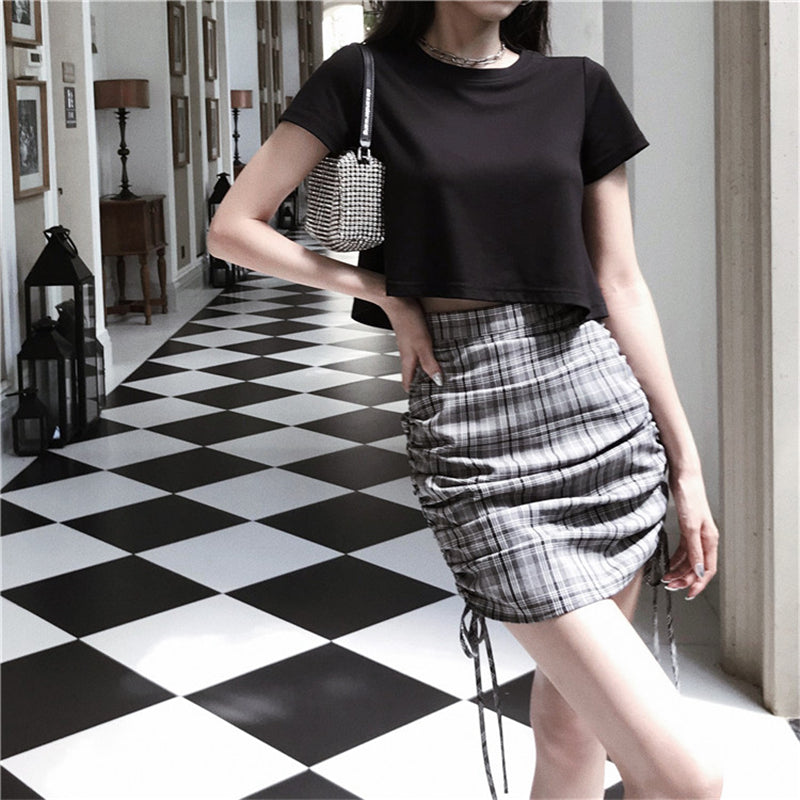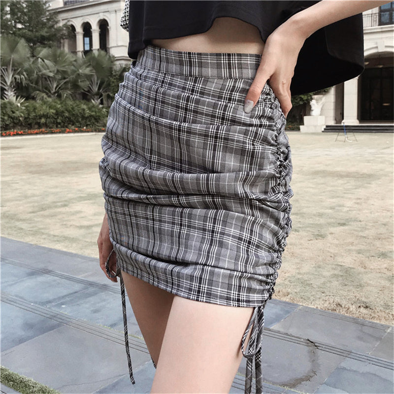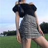 "RETRO PLEATED GRAY PLAID" SKIRT N051006