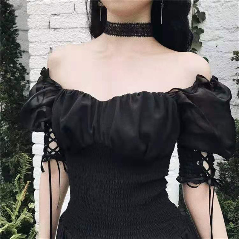 [@sapplesauce666] "DARK GOTHIC MESH PUFF SLEEVE" DRESS N042406