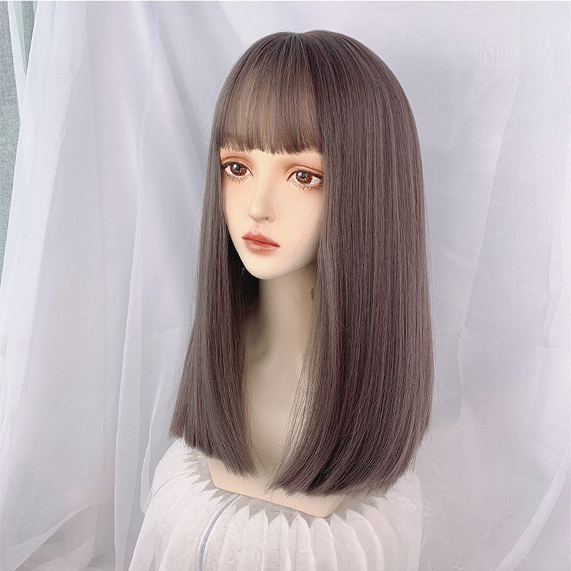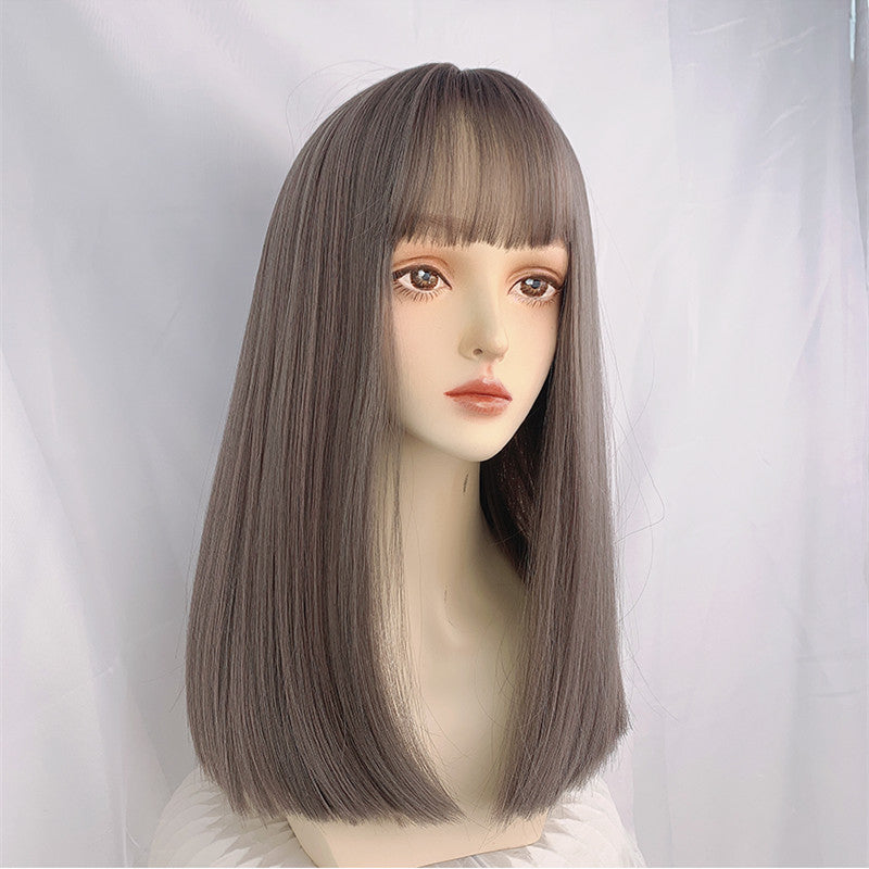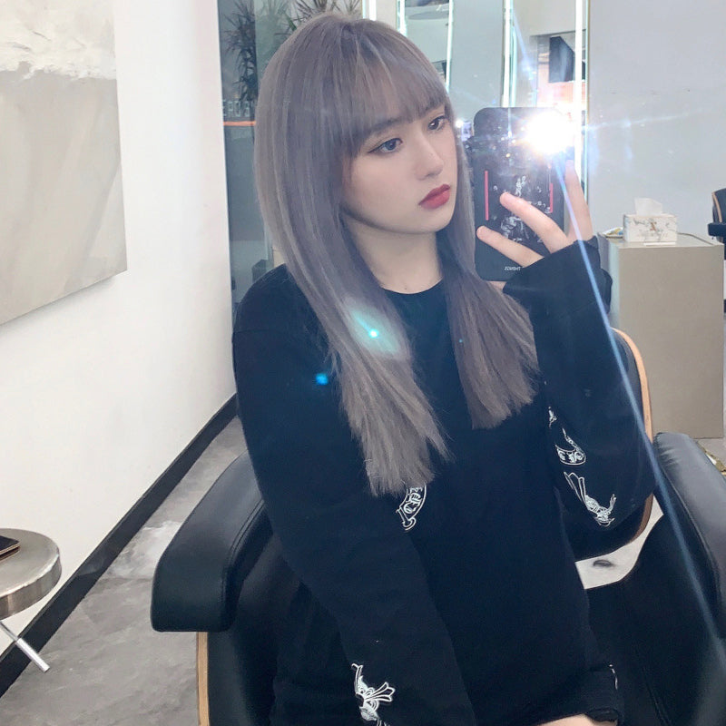 "STRAIGHT BANGS SMOKY GRAY LONG" WIG N101305