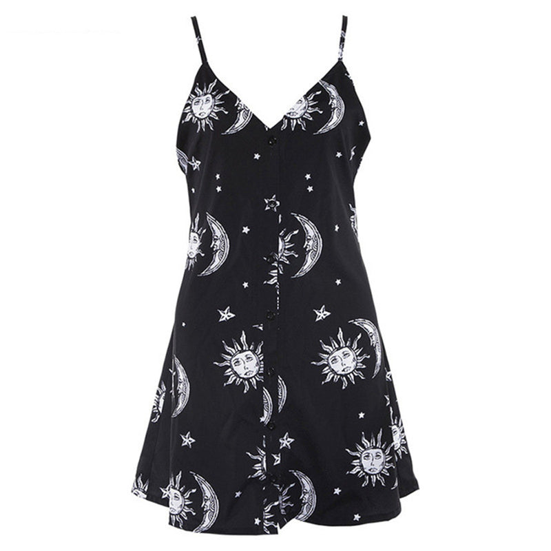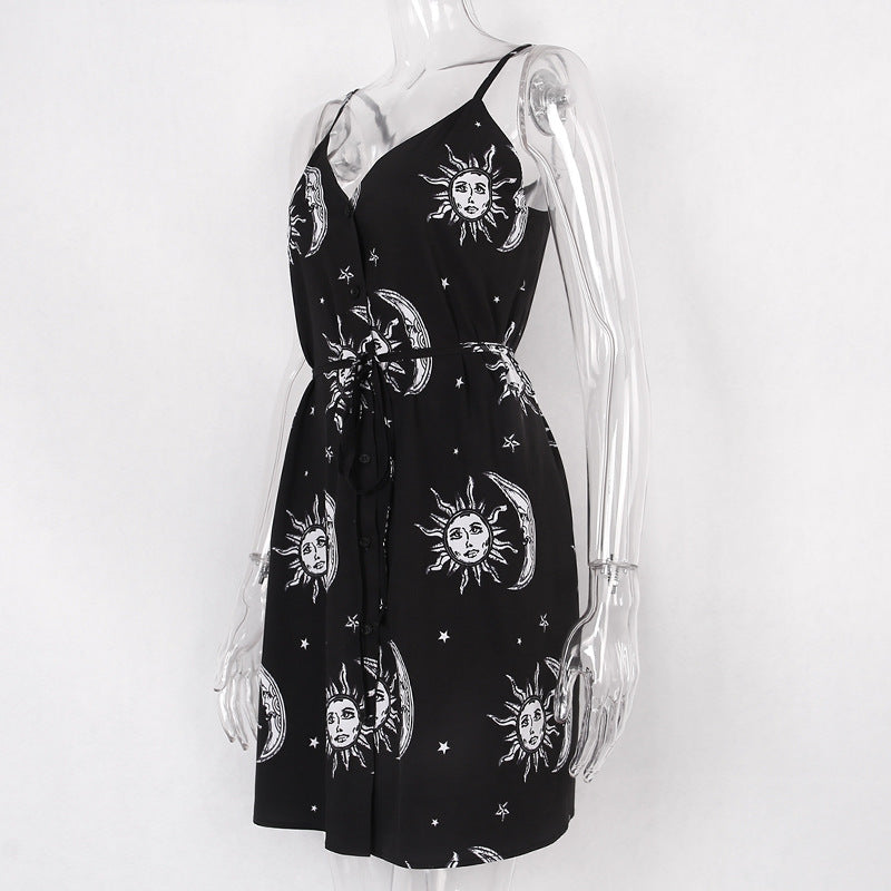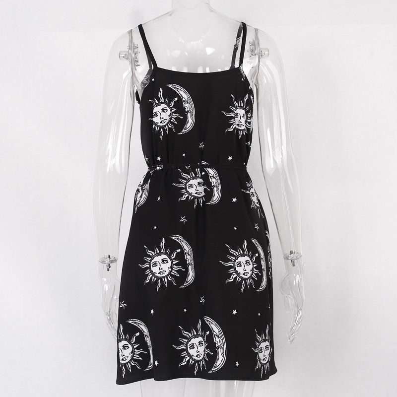 [@strega_salamander] “BLACK SUN & MOON” STRAP DRESS W041303