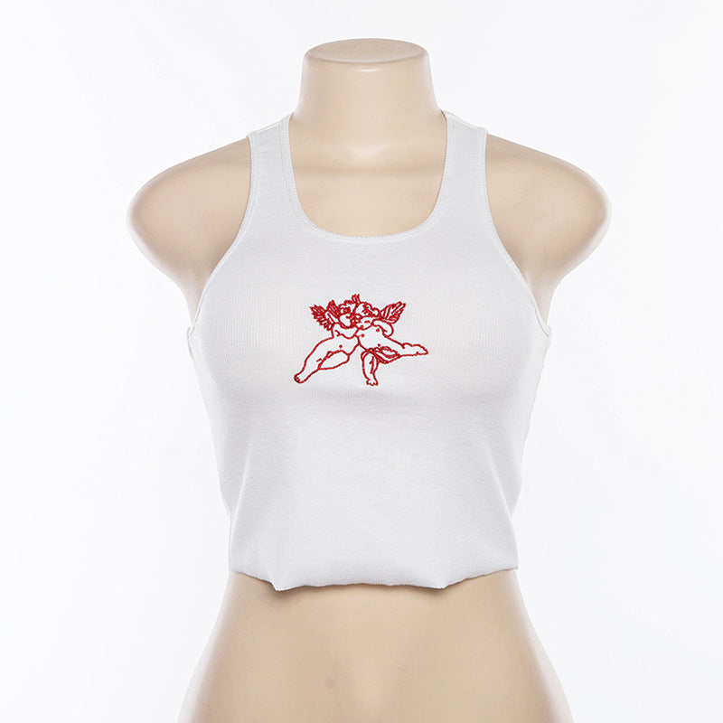 "U-NECK EMBROIDERY ANGEL" VEST K112007