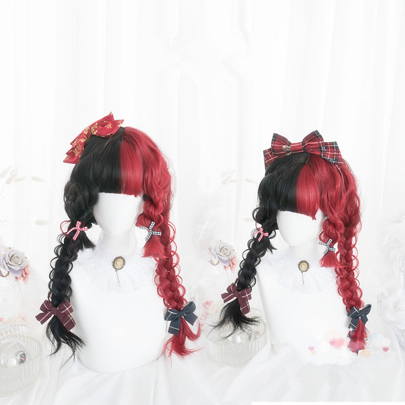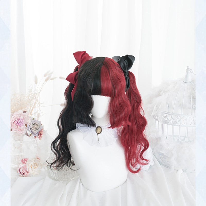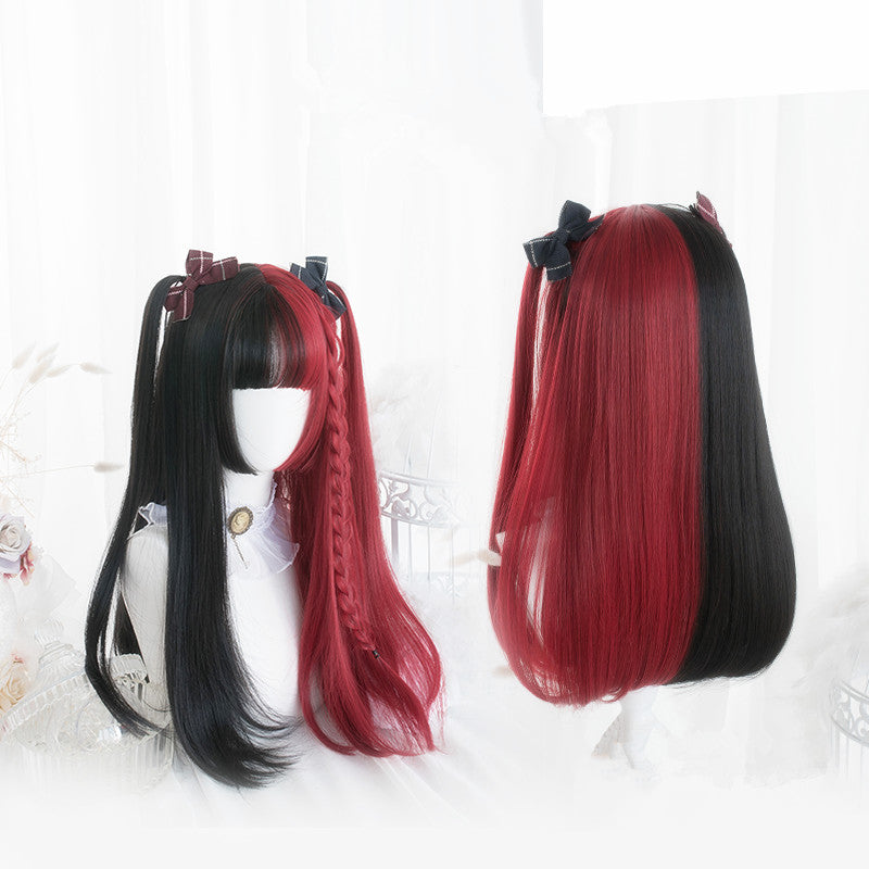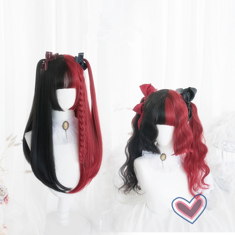"HALF RED HALF BLACK" LONG CURLY / STRAIGHT WIG K081605