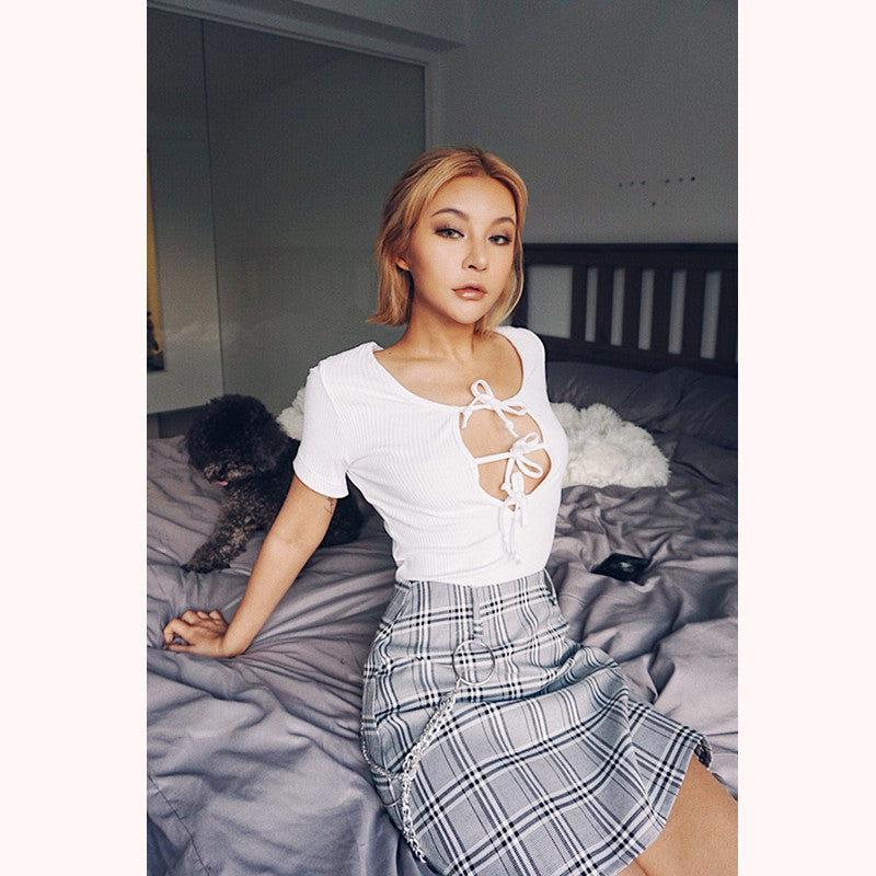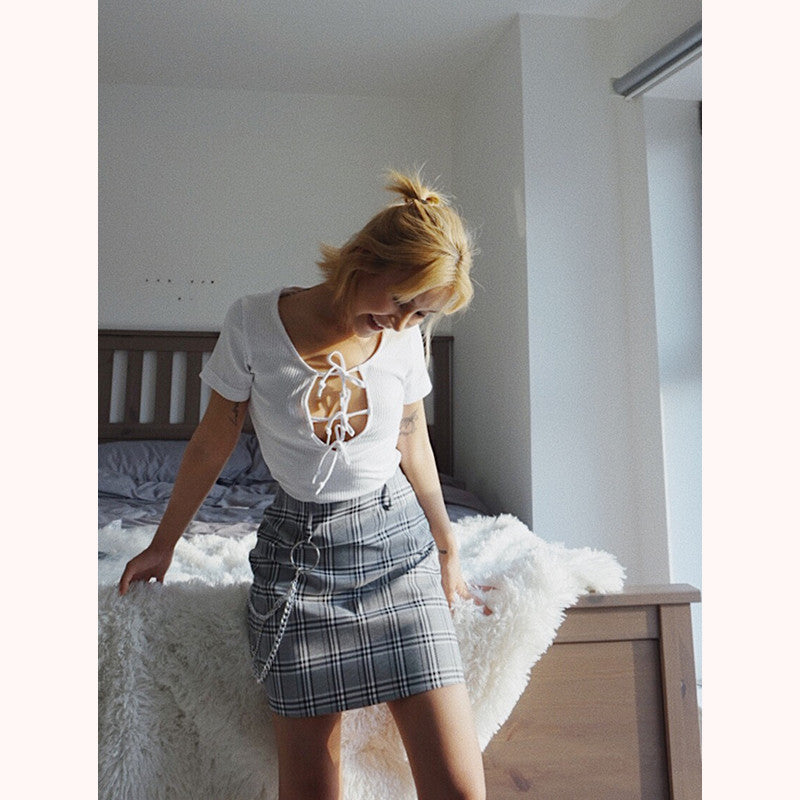 "VINTAGE PLAID" SKIRT WITH CHAIN K053101