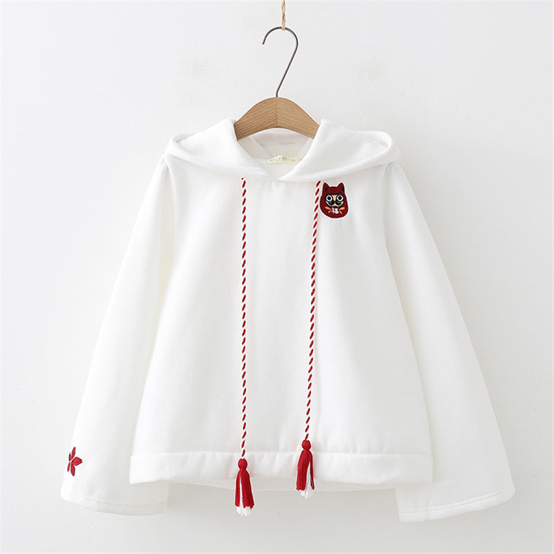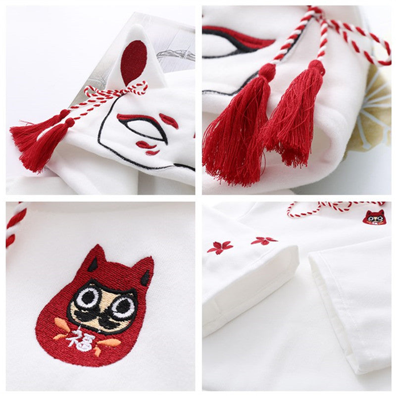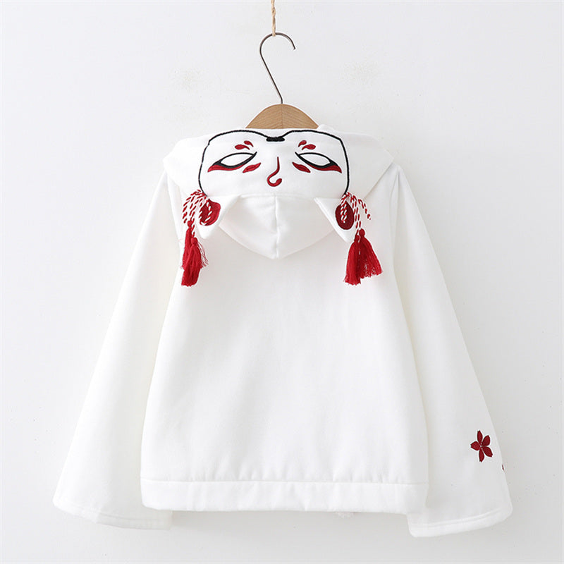 "WHITE/BLACK CUTE HARAJUKU FOX MASK FLEECES" HOODIE K092108