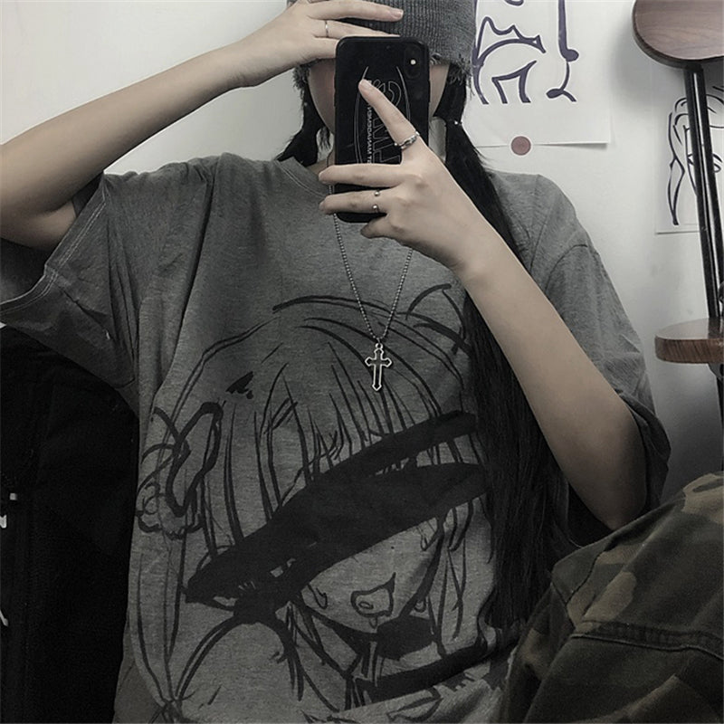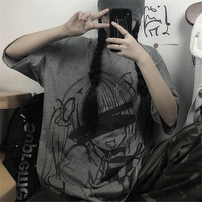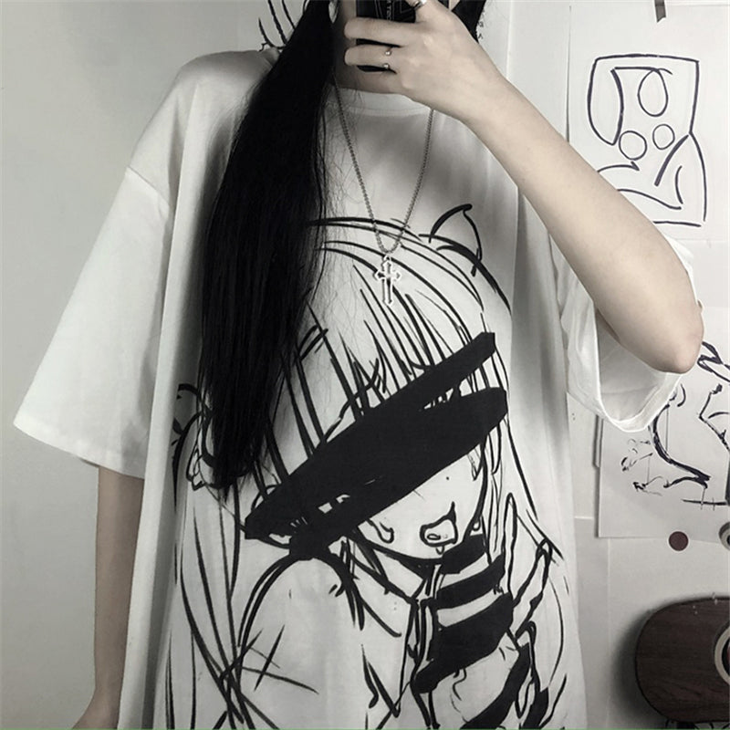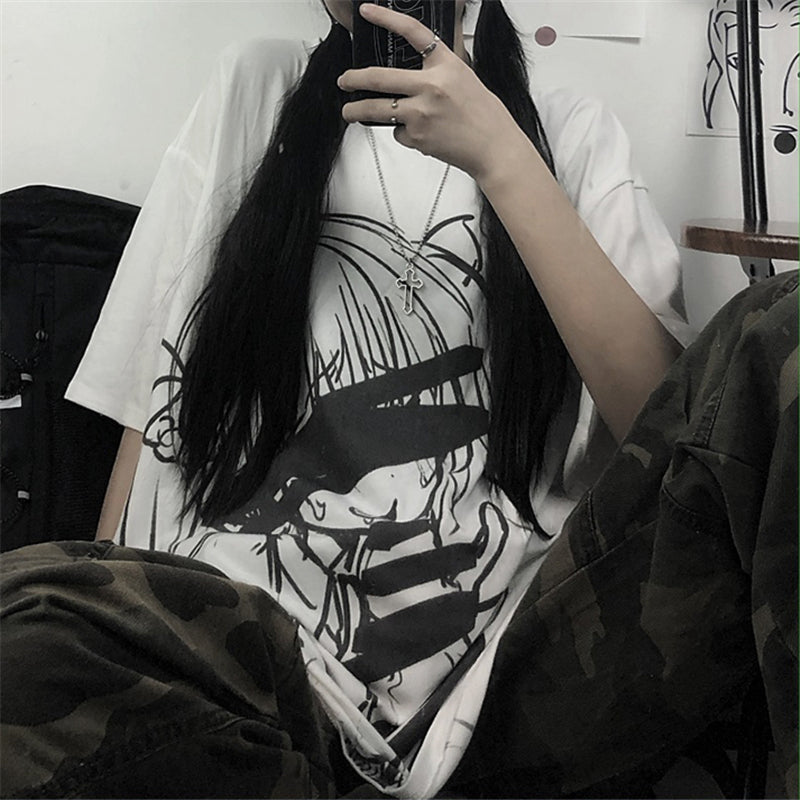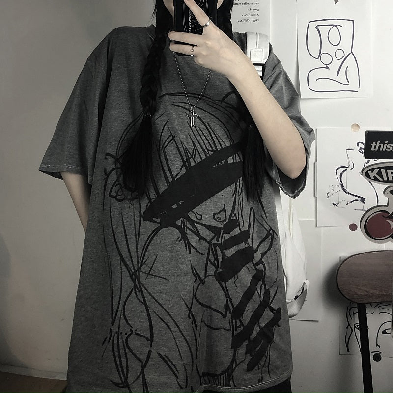 "WHITE/GREY HARAJUKU COMIC PRINT" T-SHIRT UB2457