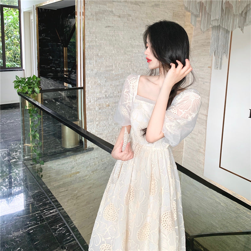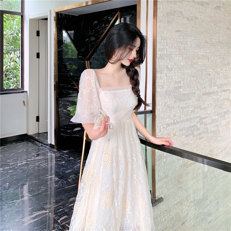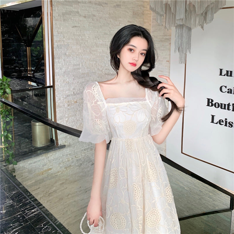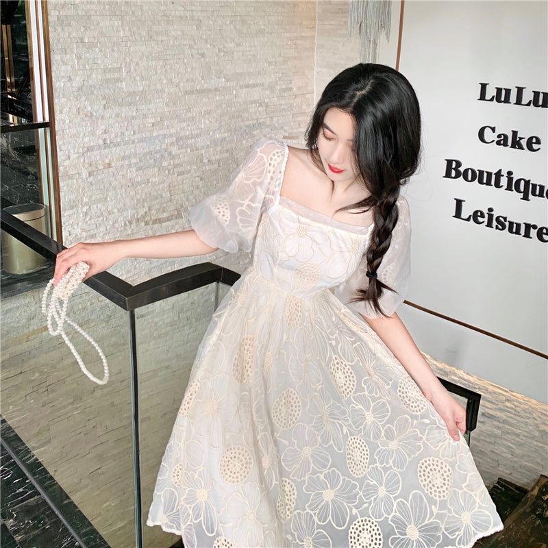"WHITE RETRO HOLLOW EMBROIDERED FLOWER" DRESS N040804