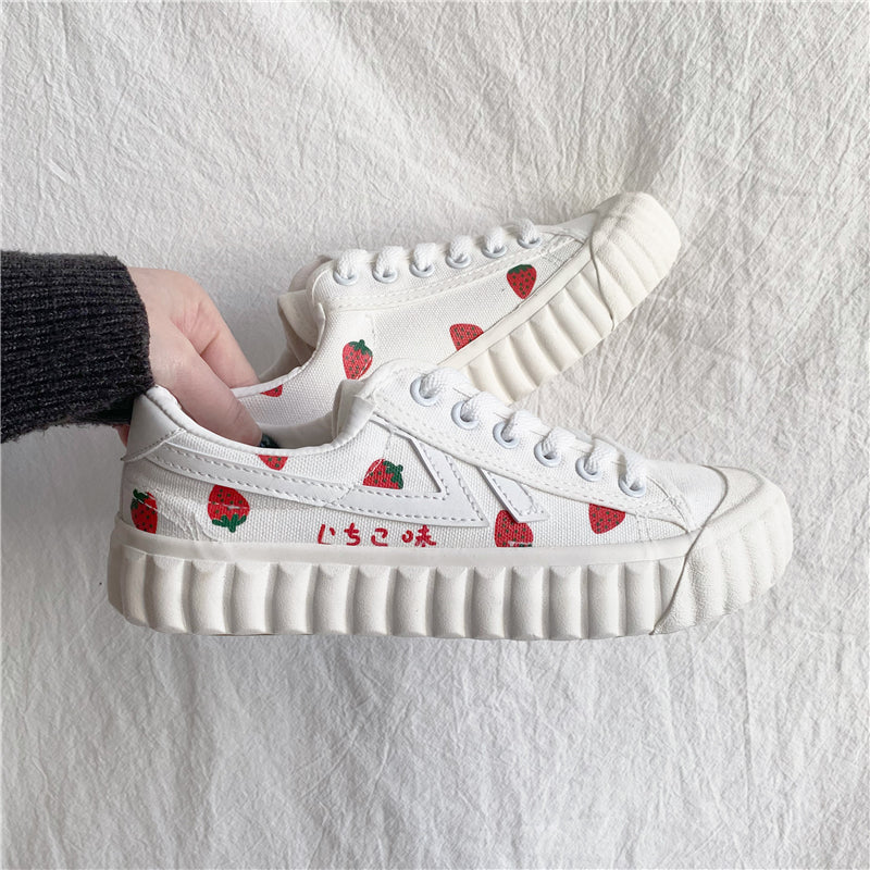 WHITE STRAWBERRY PRINT CANVAS SHOES UB2501
