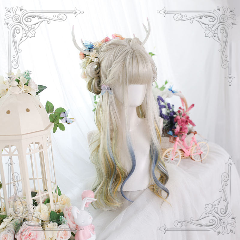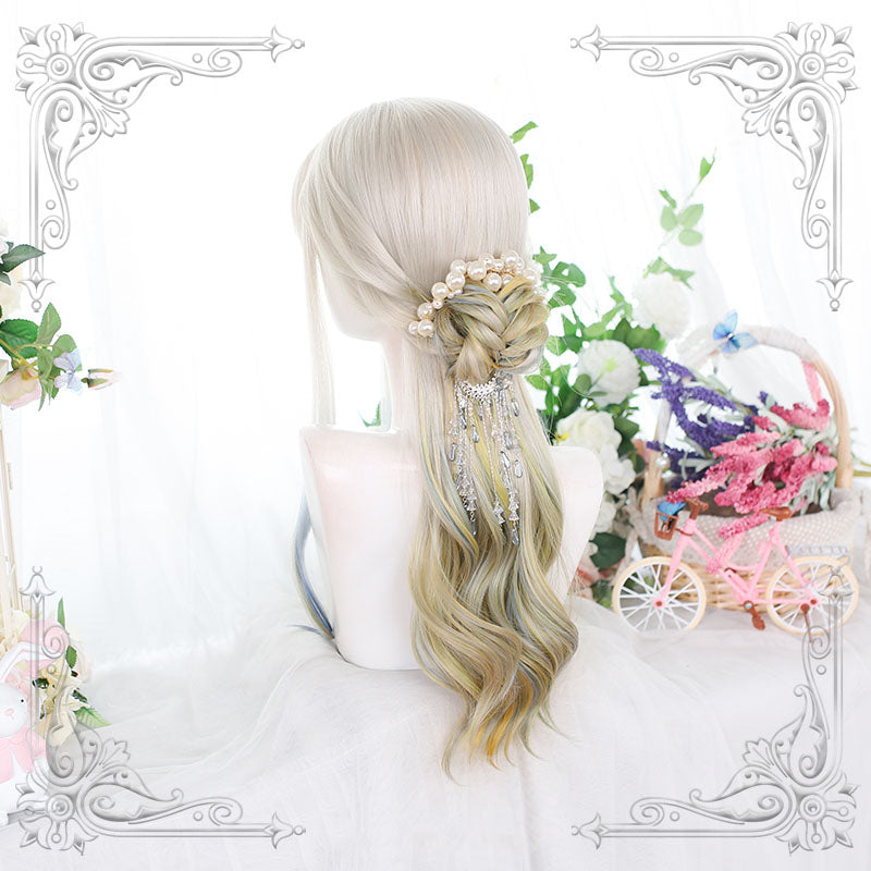 "YELLOW BLUE HIGHLIGHT LONG CURLY" WIG N052702